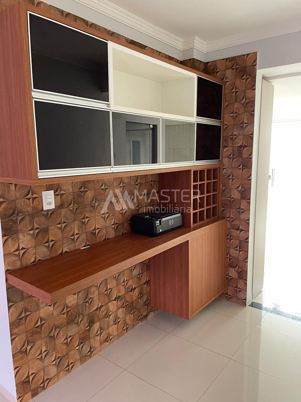 Cozinha ampla, semi mobiliada, armários, guarda-roupa, cabeceira e painel de tv.